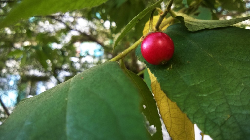 雖然叫假櫻桃,但也結果數量還蠻多的,而且果實頗甜,算得上十分美味,春天的時候則會開滿白色的小白花,夏天開始大量結果,也因此,很容易吸引小鳥,是很好聚集鳥類的樹種,所謂「有樹有生態」,大概就是這樣吧!