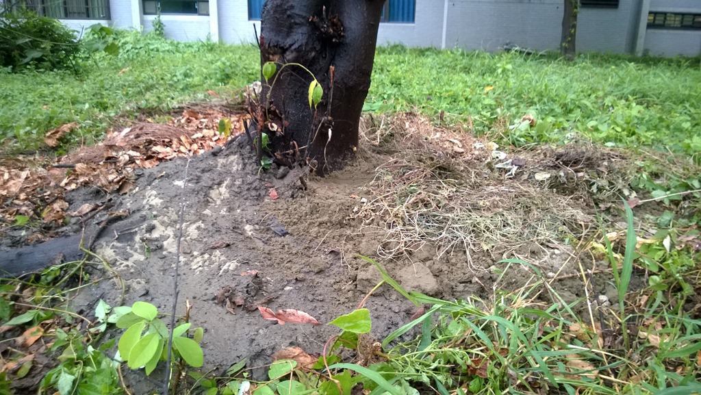 先移除根部的柏油,並重新覆土,讓樹能夠重新呼吸並收到水份,該做的都做,剩下只能請主幫忙了。